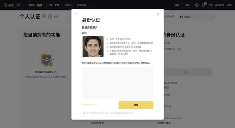 10.上传完成后,单击【继续】。根据样例示范,上传您的肖像照,点击【继续】。